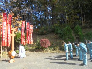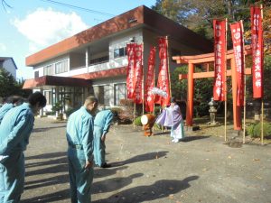 当社でも毎年、敷地内に祀られている稲荷神社にお供え物をし、神主様による祝詞奏上、